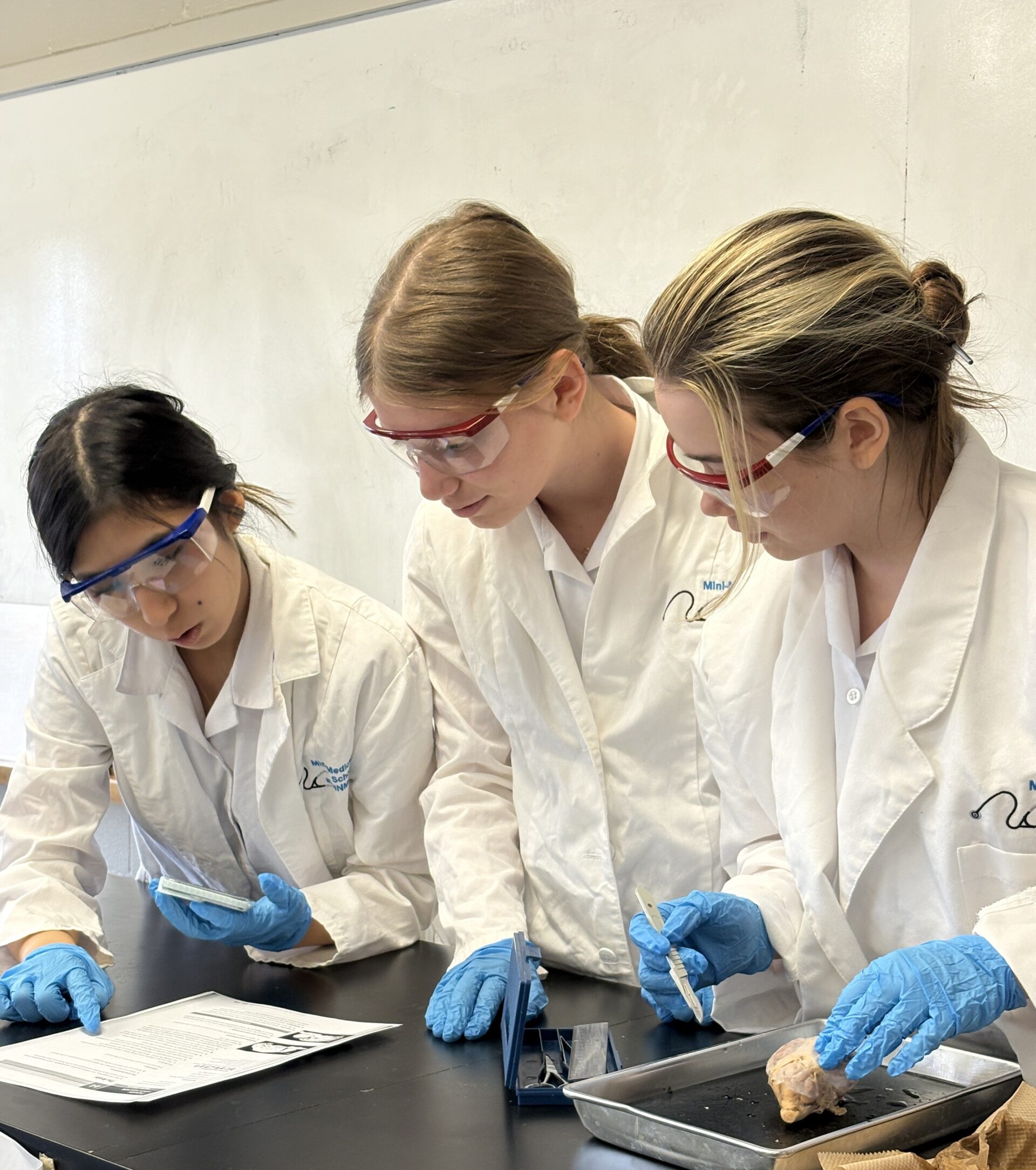 Our Grade 12 Biology class recently performed a sheep brain dissection that transformed the abstract neuroanatomy taught in class into a tangible experience. Students began the dissection by examining the external anatomy such as the distinctive ridges and grooves of the brain and comparing the different outer membrane layers intended to protect the brain. Once the outer membrane was removed, the students identified the key regions like the cerebrum, responsible for higher-order thinking, and the cerebellum, which coordinates movement.